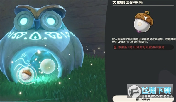 前往靠近水域的眠枭庇护所使用果实,等待刷新甜田螺,之后进行捕捉。