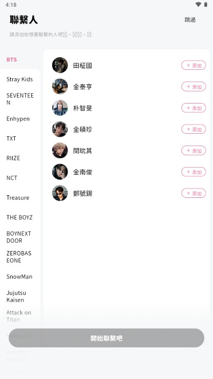 4、登录完成以后,选择我们感兴趣的AI人设,大部分都是韩国明星以及一些动漫;